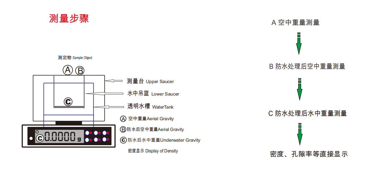 儀特諾密度儀測量三步曲,以ET-320M或(huo)ET-120HM為(wei)例,測量塊狀(zhuang)、片狀(zhuang)等不(bu)規(gui)則多(duo)孔樣品,就下面簡單的三步: