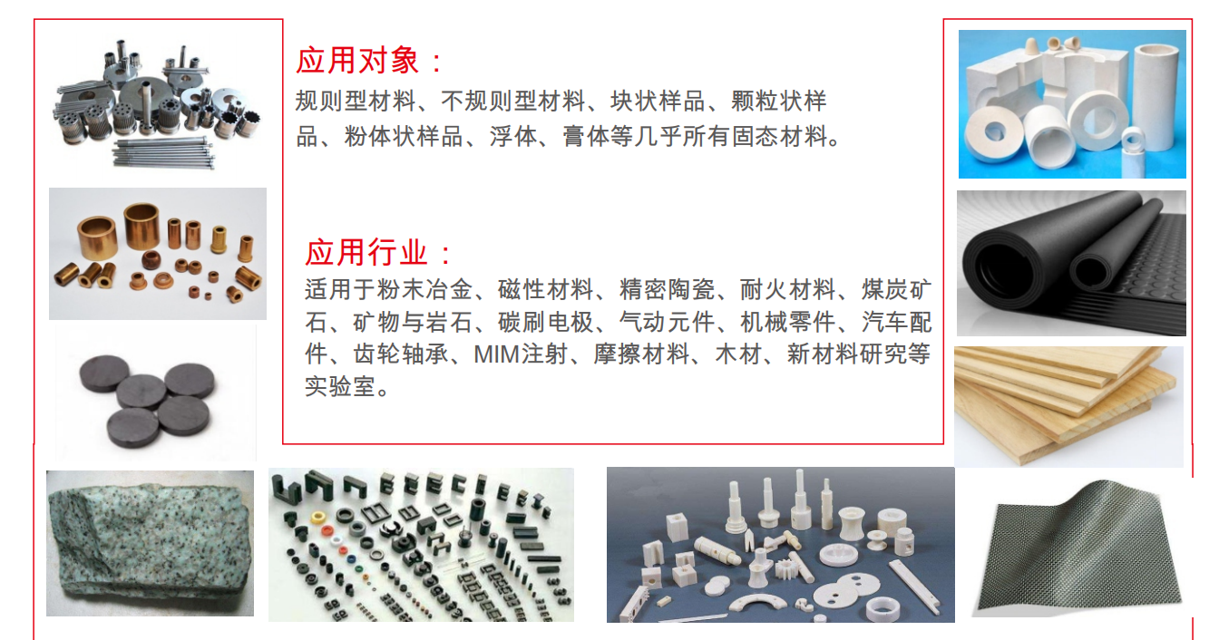 無論您是來自粉末冶(ye)金(jin)、陶瓷(ci)、建(jian)材還是科(ke)研院(yuan)所,只要(yao)您的(de)產品(pin)和多孔、吸水有關,需要(yao)測(ce)量密(mi)度、孔隙率、含油率等一(yi)系列參(can)數,都可以使用(yong)儀特諾ET-320M、ET-120HM、ET-120S系列多功能密(mi)度儀,它讓復雜(za)的(de)檢測(ce)變(bian)得像“稱重”一(yi)樣簡單,幫您把(ba)寶貴的(de)時間和精力(li),投入到更重要(yao)的(de)研發和生產中去。